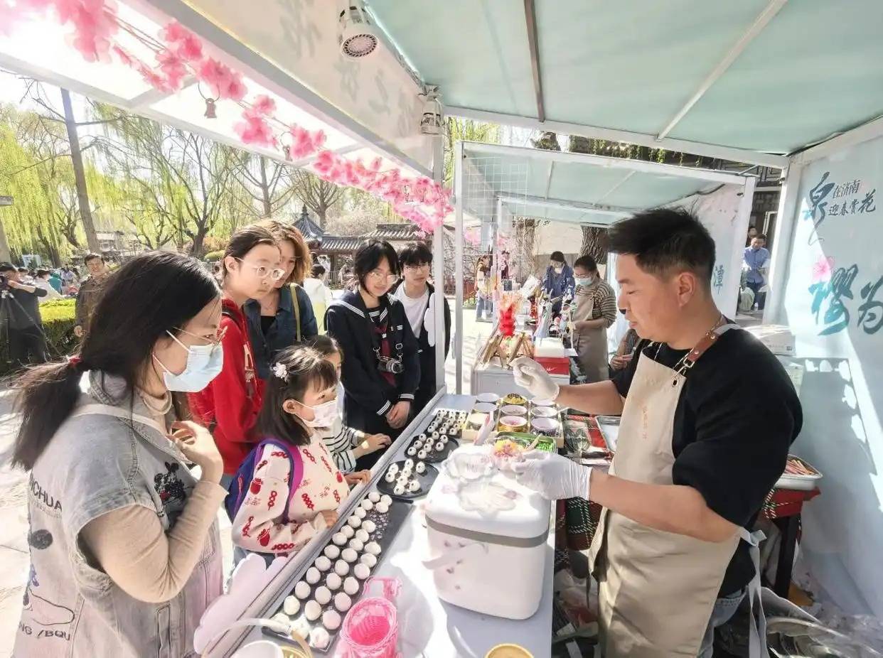 (泉游济南)(六)樱花主题市集时间:3月21日-4月19日地点:五龙潭公园互动体验、非遗手作、樱花主题创意甜品、文创产品、美妆休闲体验汇聚一堂,“樱”有尽有,让您在“贩卖春天”的浪漫氛围中,尽享味蕾与心灵的双重满足。