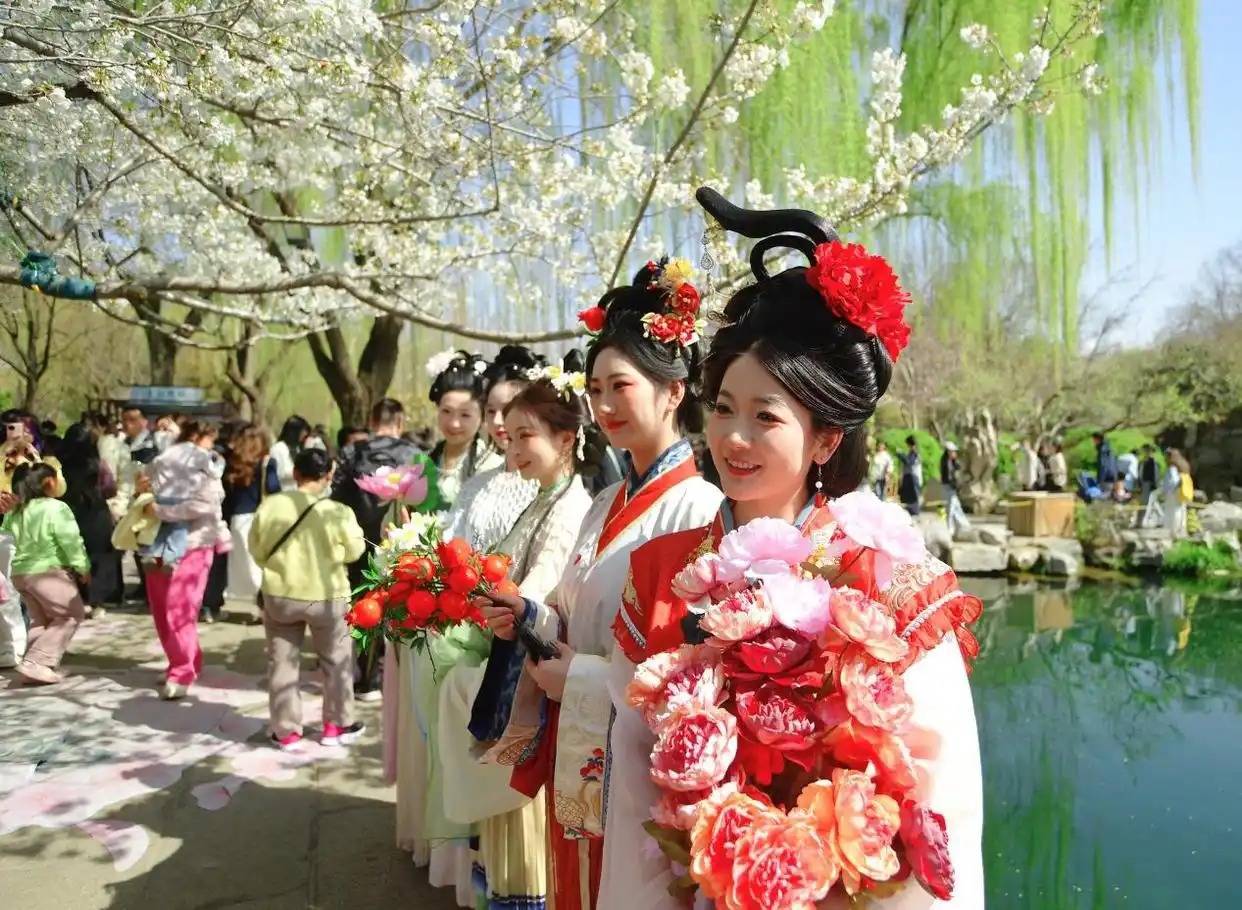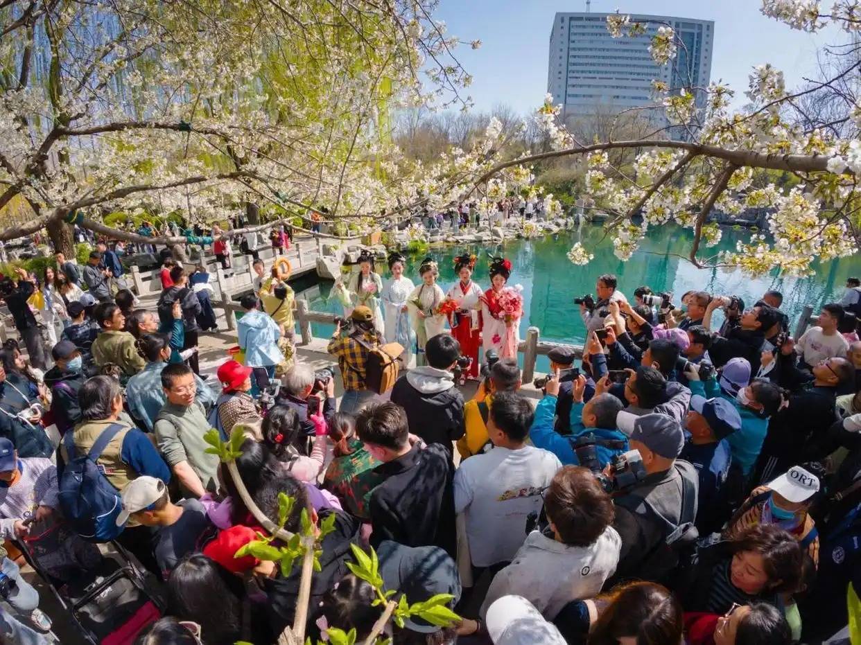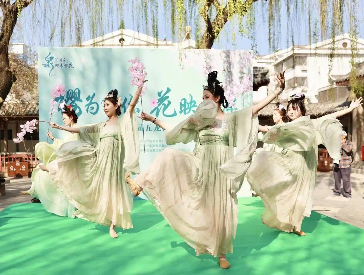 (泉游济南)(四)汉服巡游时间:活动期间每周六上午9:30-11:00活动期间,汉服佳人穿梭于樱花丛中,衣袂翩跹,粉樱相映,宛如从千年画卷中穿越而来。让您在泉城春色里,沉浸式邂逅传统文化之美。